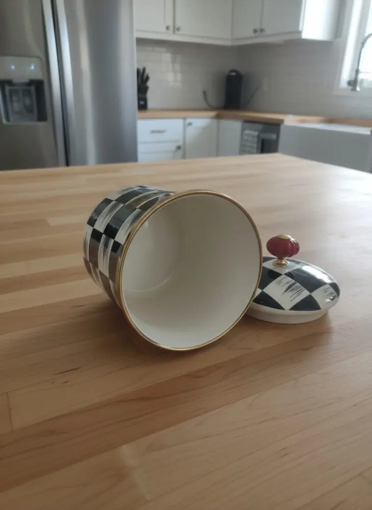 - STYLISH DESIGN: Black and white checker pattern canister set with elegant red knobs and gold-tone accents, perfect for modern kitchen decor