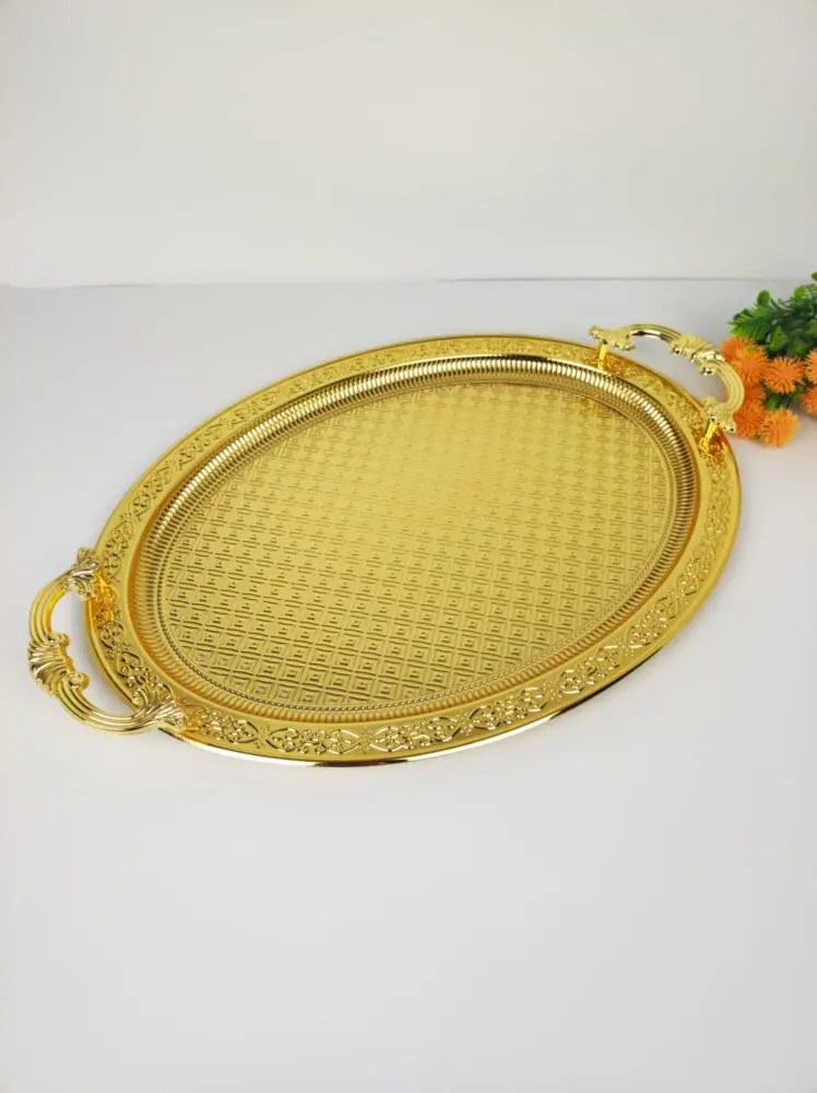 Large Silver Color Labyrinth Design Steel Oval Tray